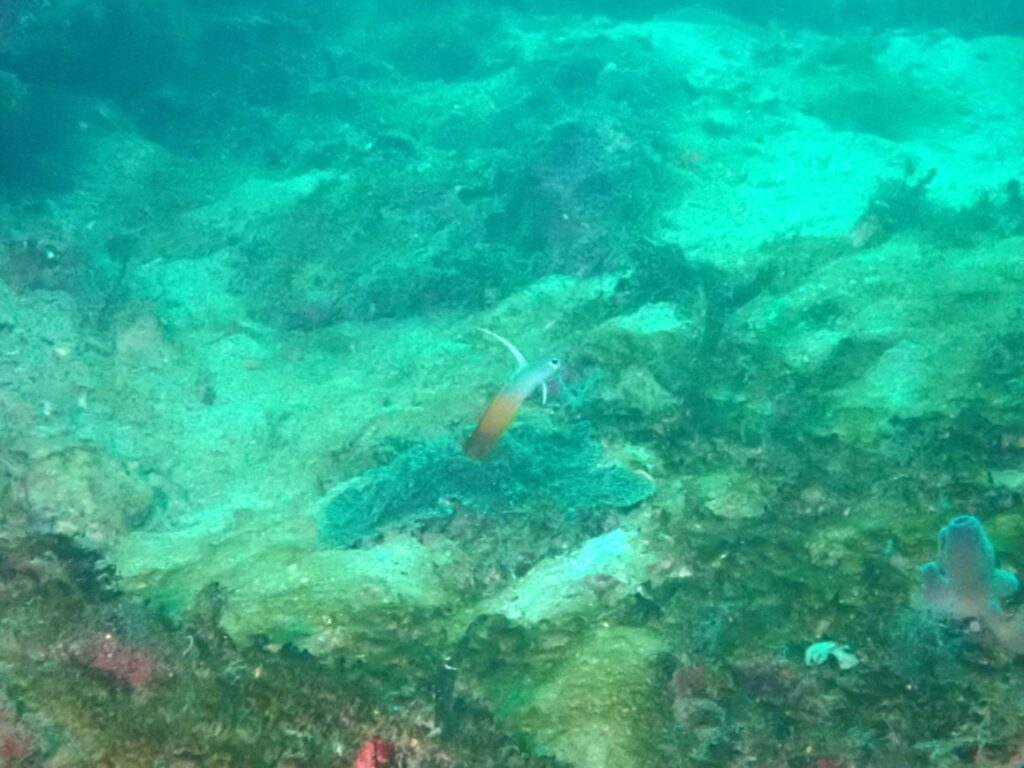 沈ボートよりちょっと浅いところでは、今の方座浦のアイドル「ハタタテハゼ」