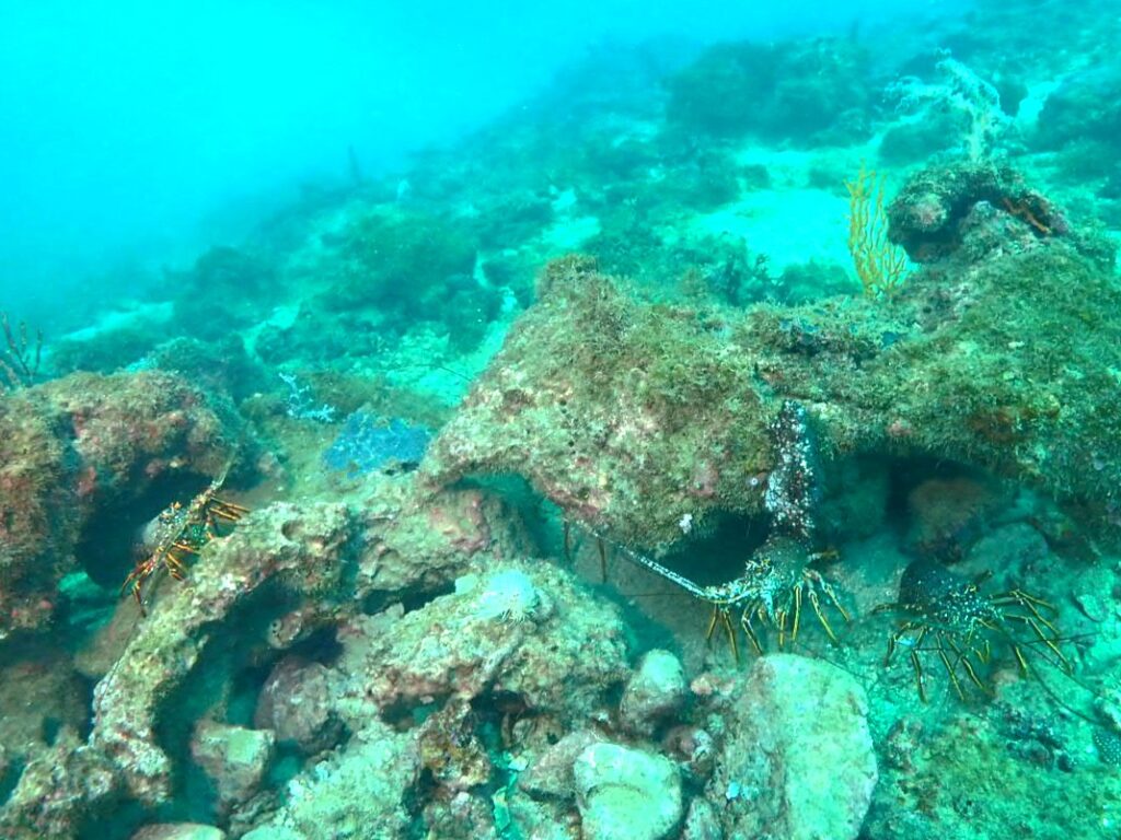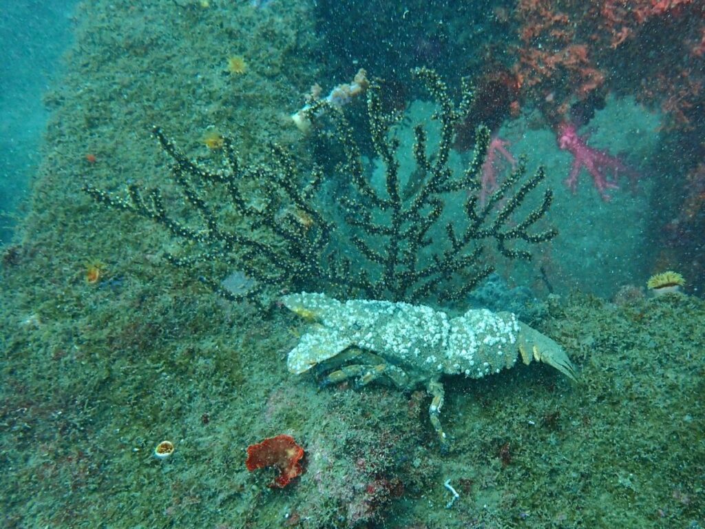 その周りの岩にはなぜか急に増えたイセエビ!