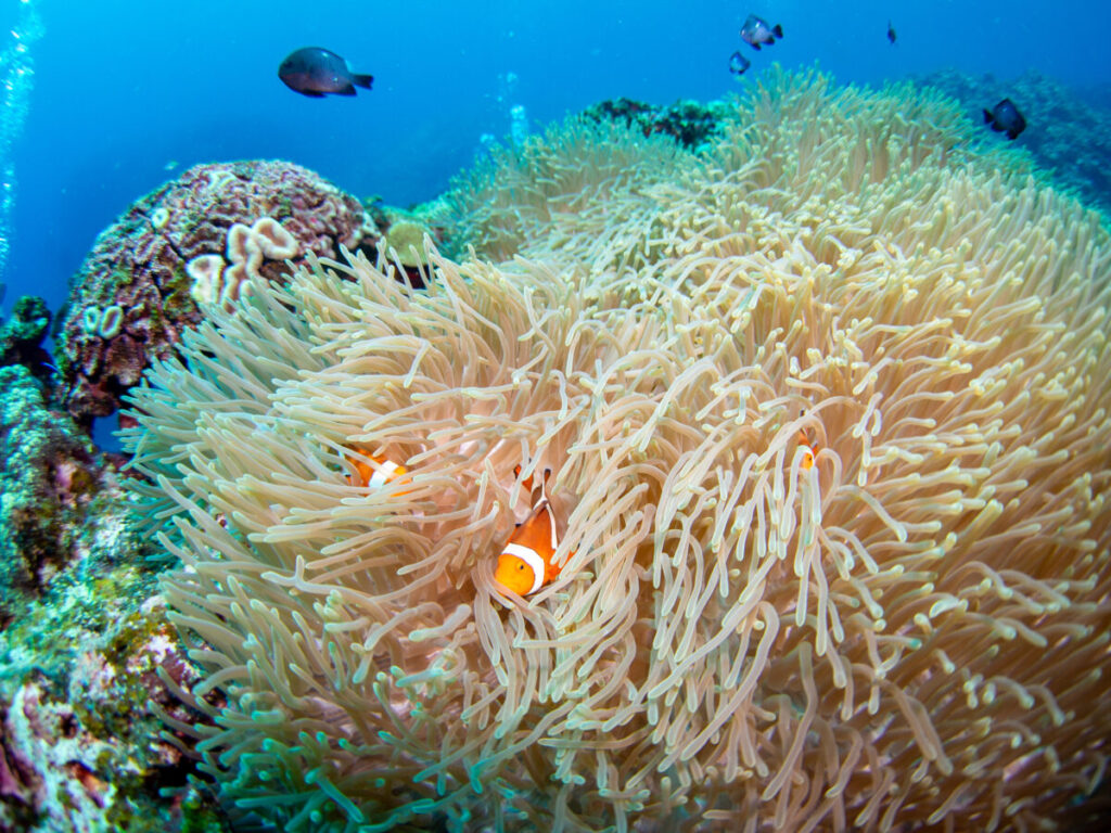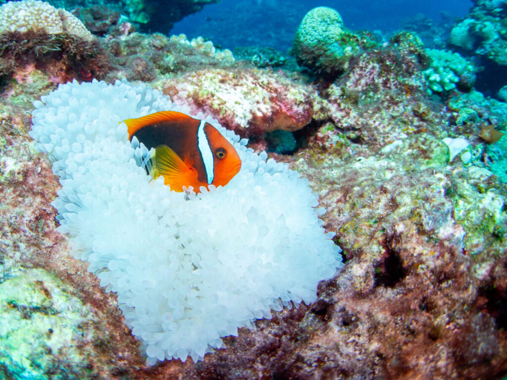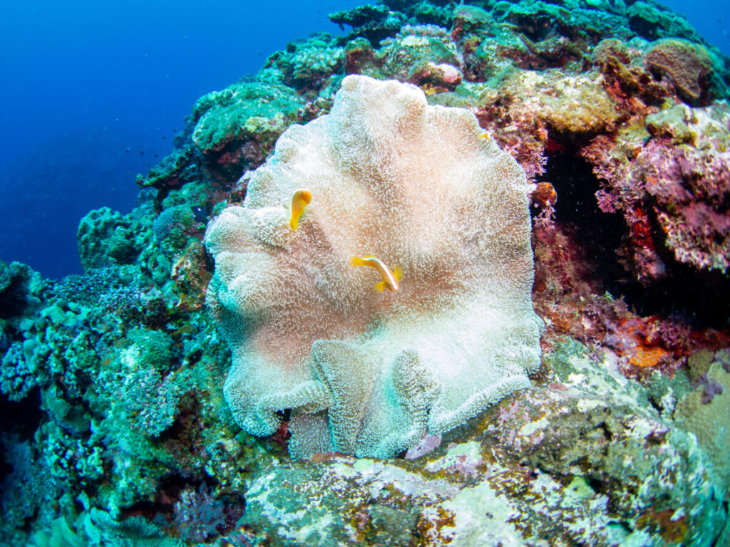 トンネルでてからは、白化イソギンチャクのハマクマノミ!