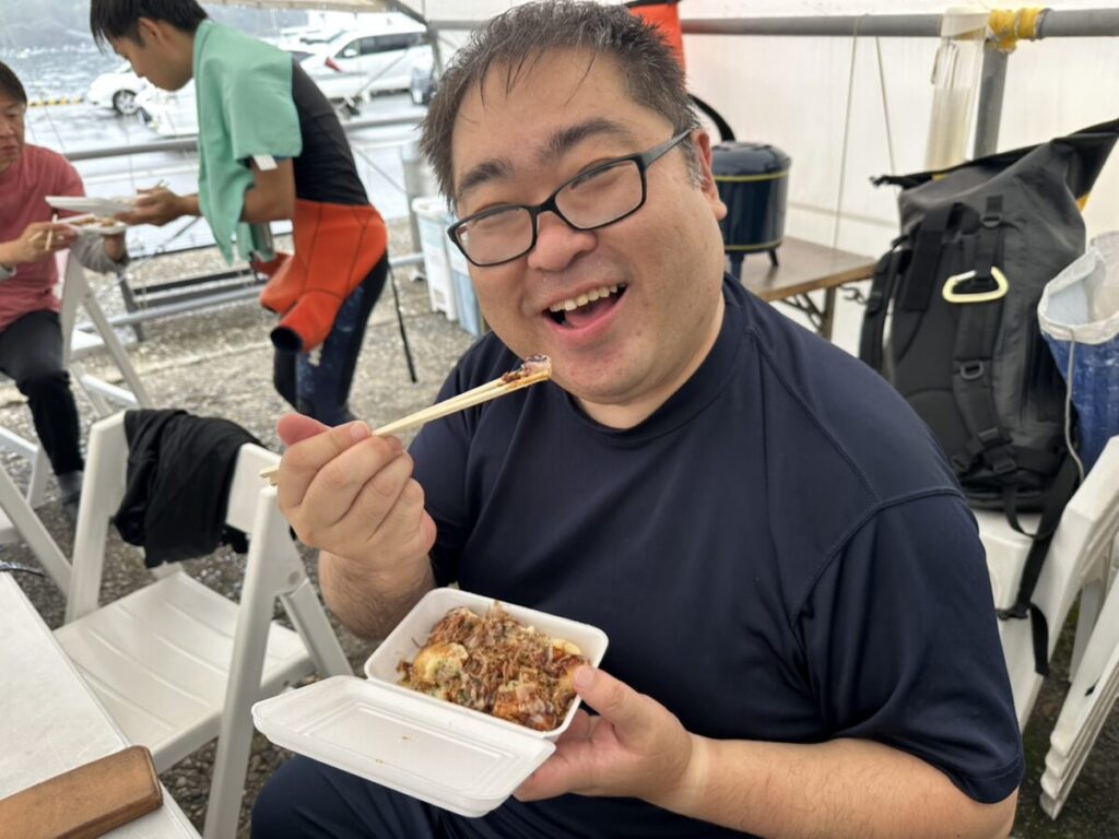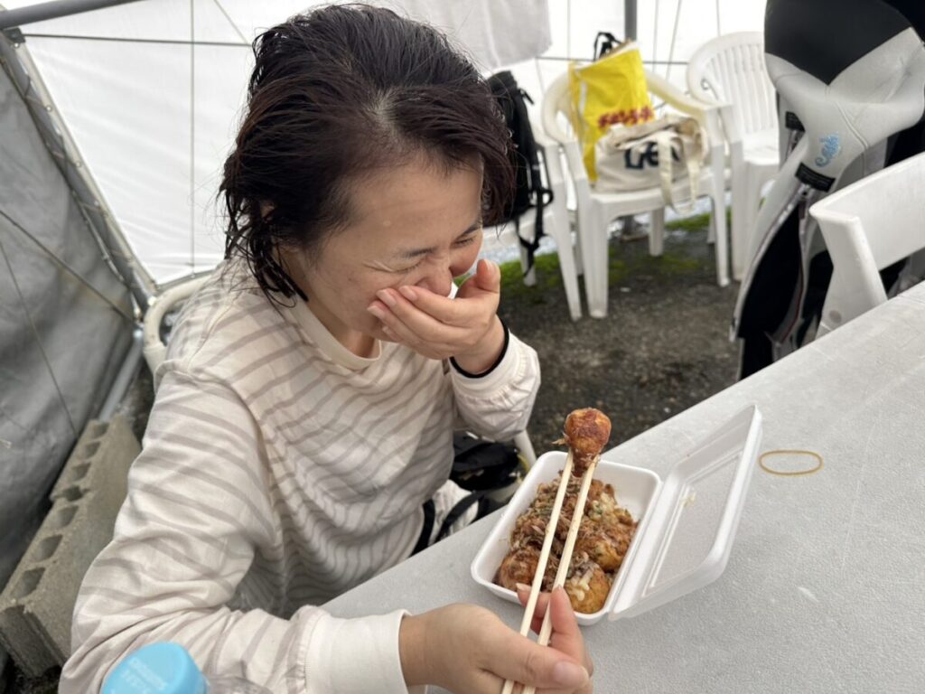 休憩タイムは今年三木浦にオープンしたたこ焼き屋さんでたこ焼きGET!