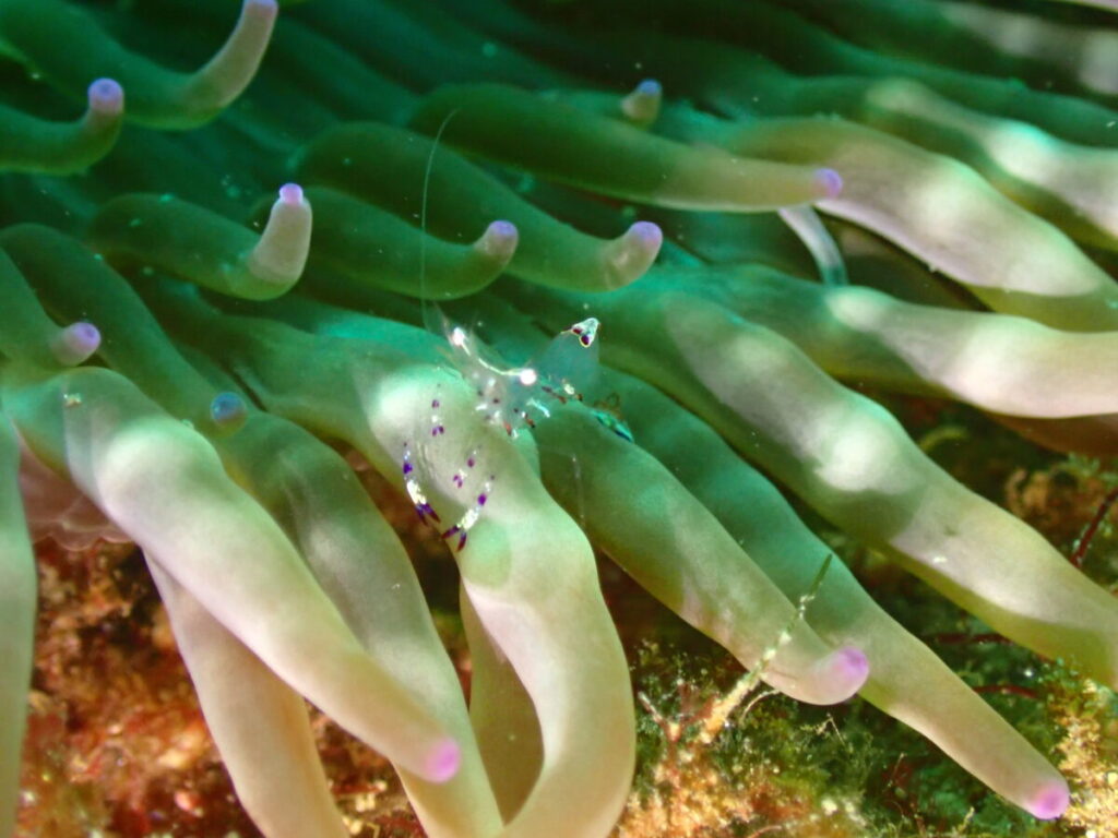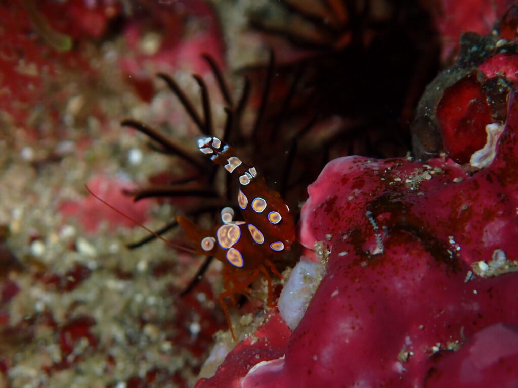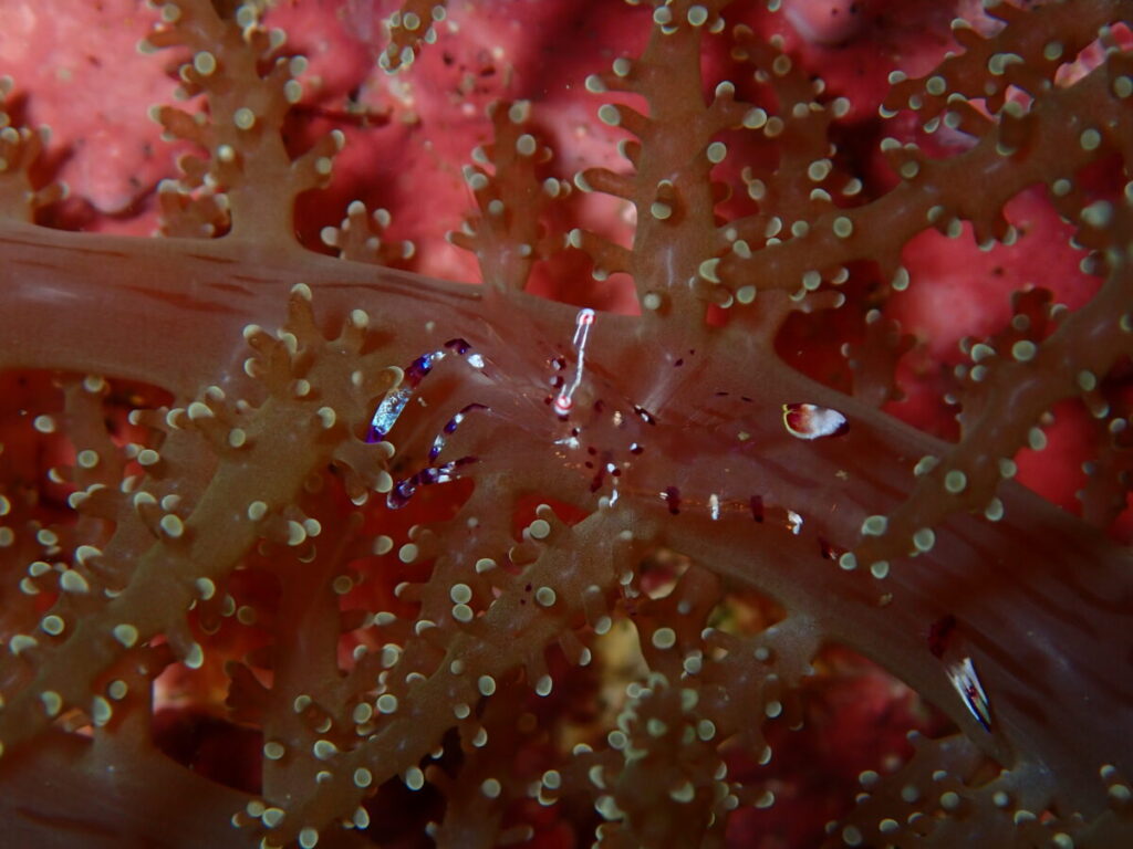 浅場にはアカホシカクレエビ!