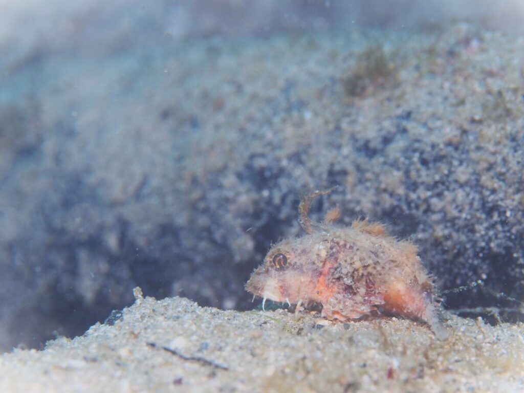 コバヤシさんがめっちゃちっちゃいカサゴ?の幼魚を見つけてました!