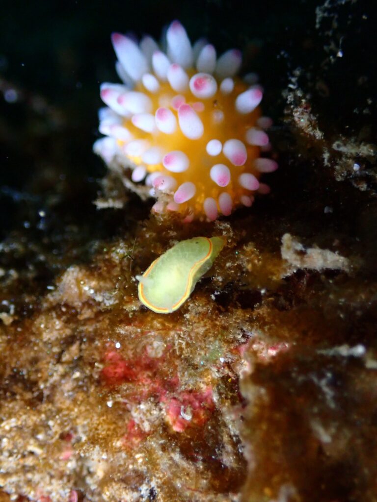 よく見たらアオウミウシの下にセンヒメウミウシが!!!