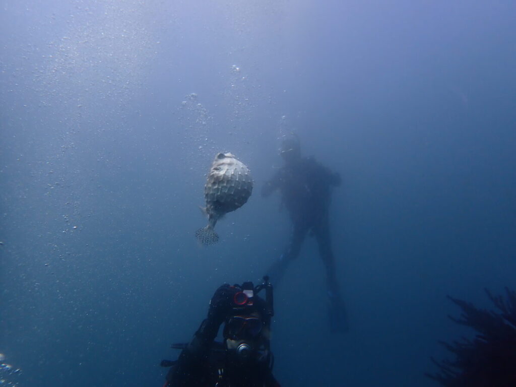 そして安全停止中にはイシガキフグが登場~!このフグ、かなり愛想がよくて、皆さんと一緒に遊びながら停止時間を過ごしましたね(≧▽≦)!可愛すぎる~!!
