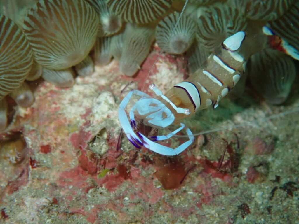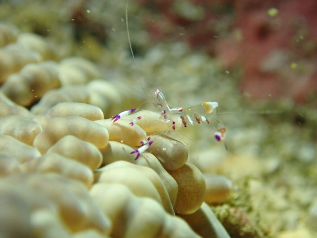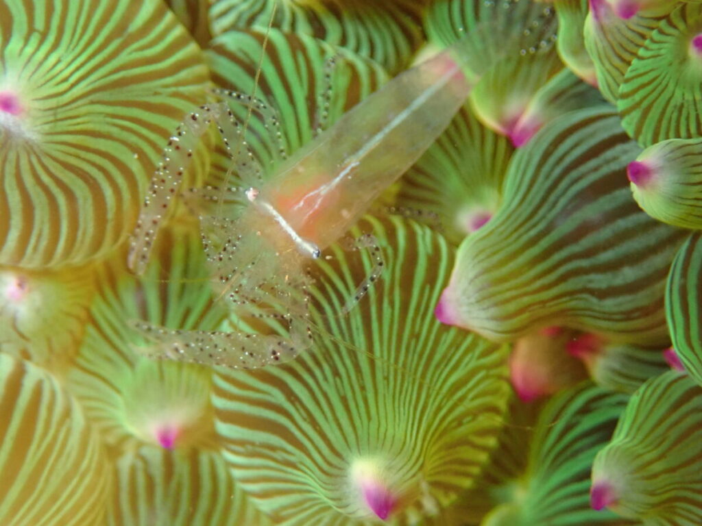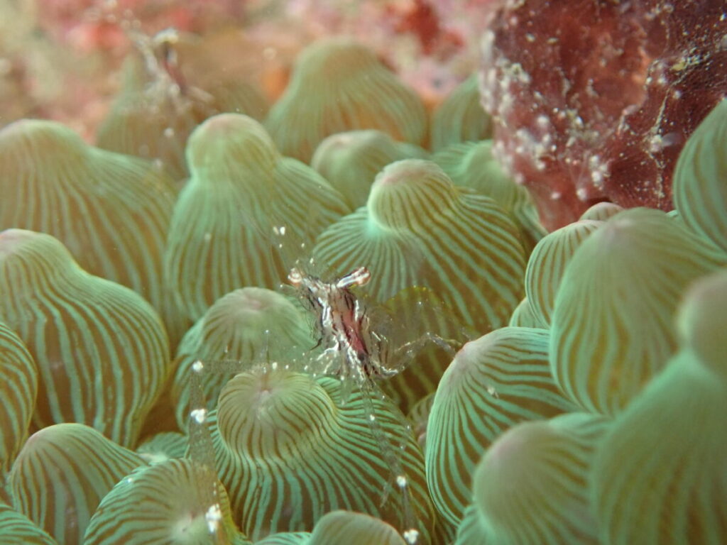 今にも飛ばされそうなアカホシカクレエビ(*´▽`*)