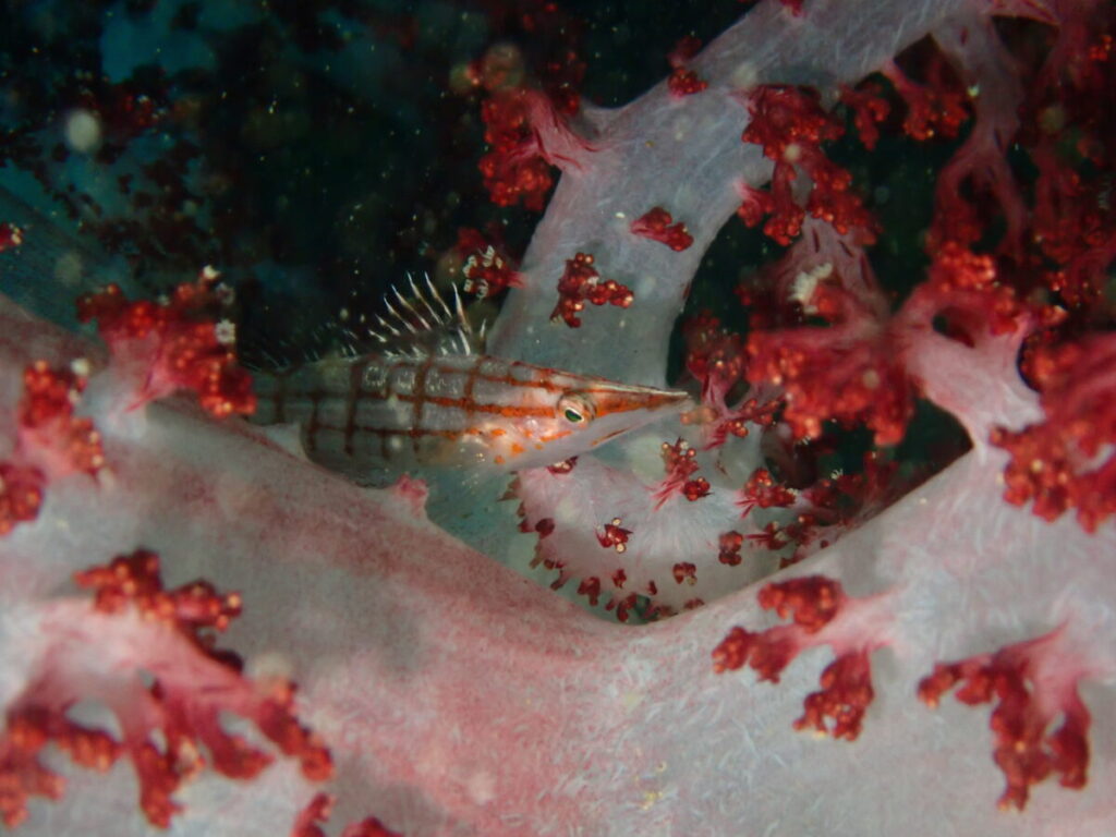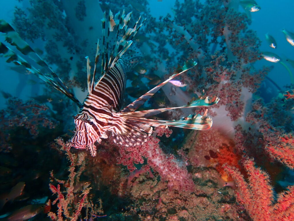 ハナミノカサゴとソフトコーラルは映えます(^^♪