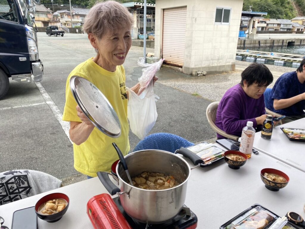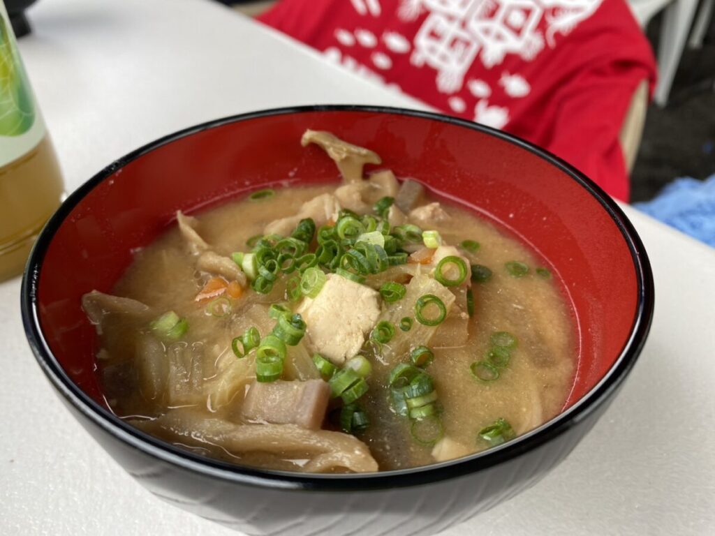 お昼ご飯はいつものお弁当に山本のお母さんから豚汁の差し入れが!!