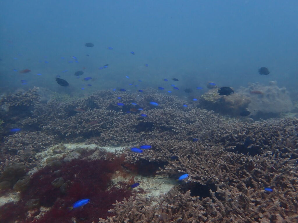 ミドリイシにはソラスズメダイがたくさん!