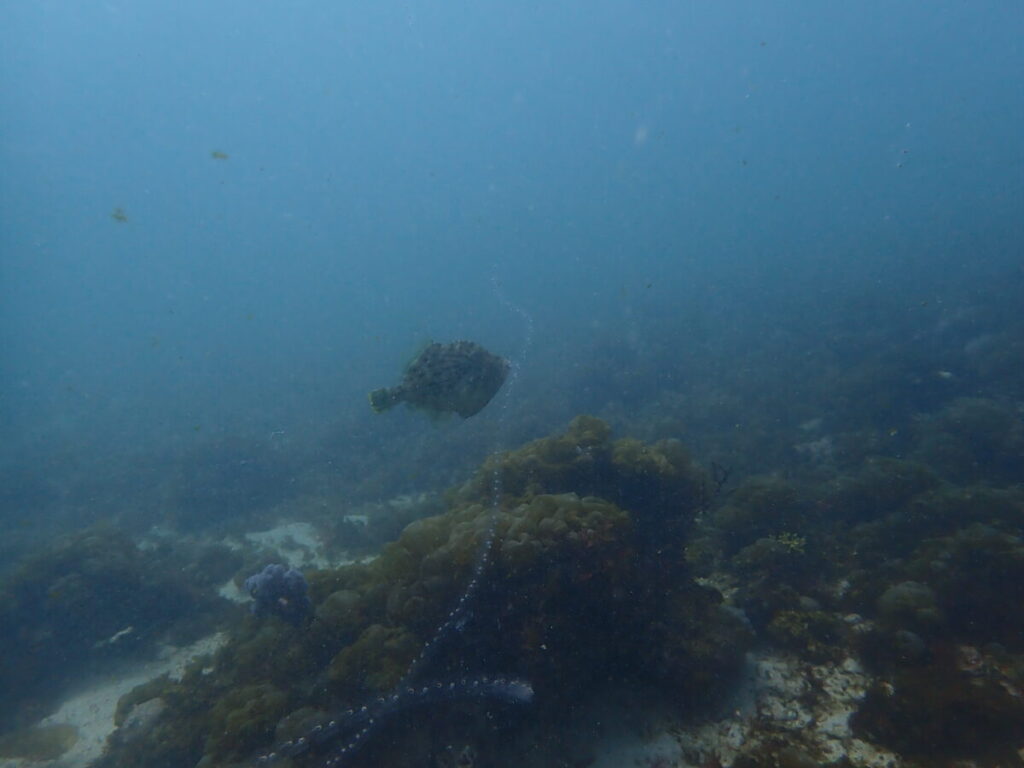 パッと横向いたらカワハギがサルパを食べてましたΣ(゚Д゚)