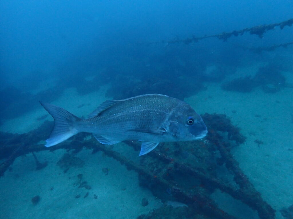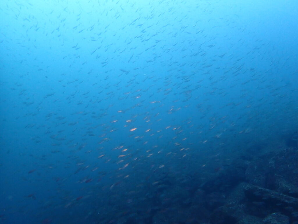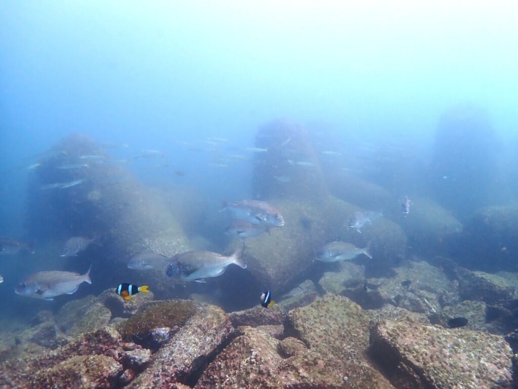 さらに奥の方へ行くとマダイの大群に囲まれました!