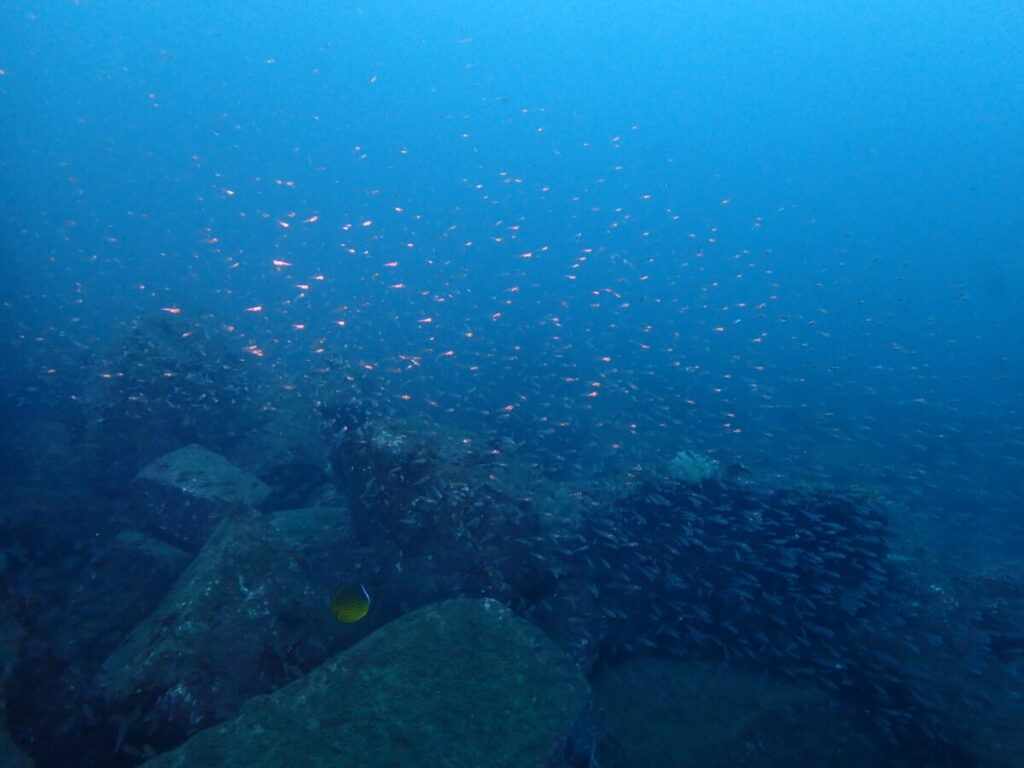 スズメダイやクロホシイシモチは所々で群れてくれてます(^^)