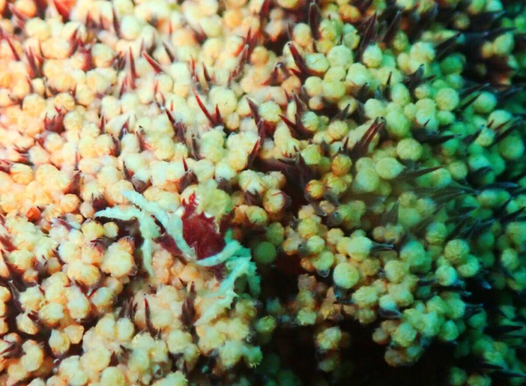 小さすぎてよく分かんないけど一つのトゲトサカに3個体いました