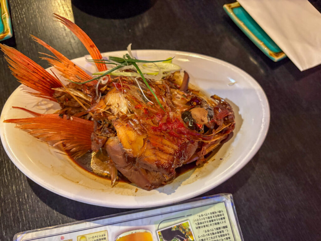 お通しはかなり豪華で、キンメダイの顔の煮つけ!!
