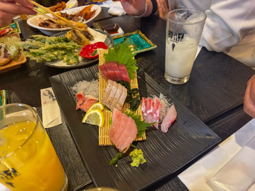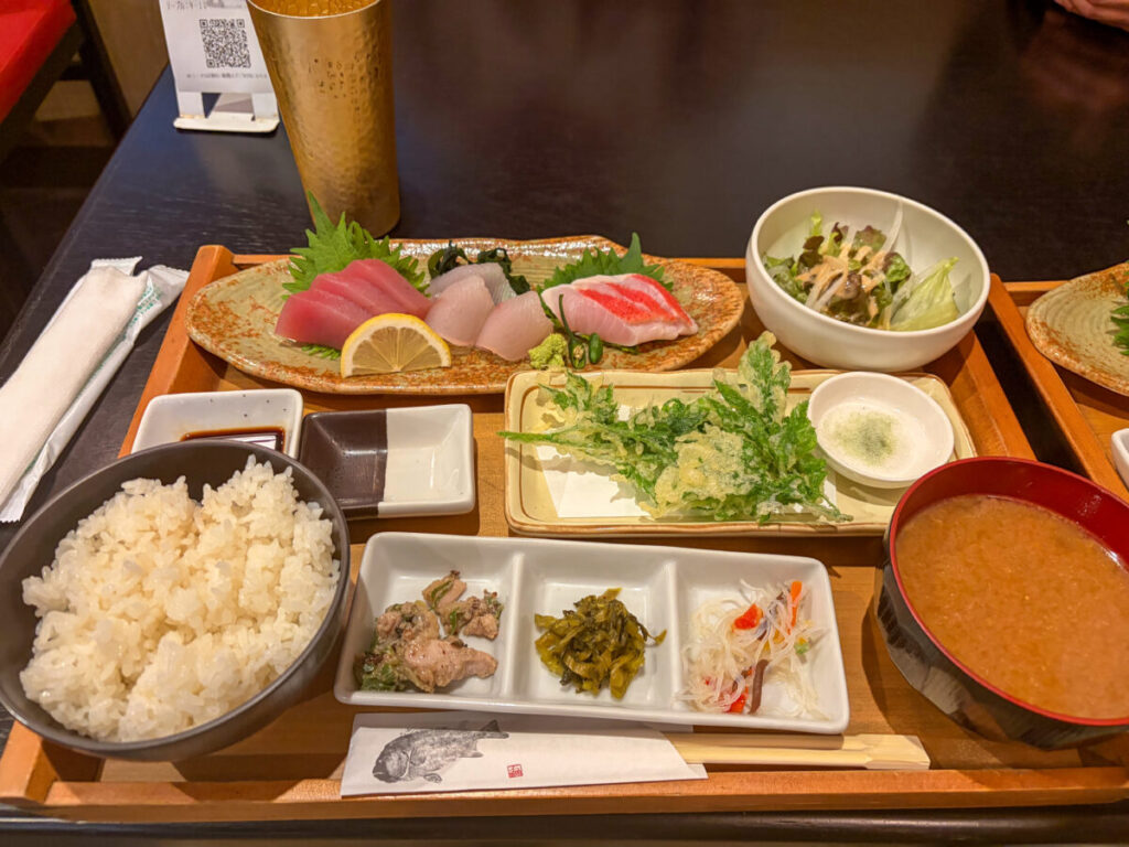 他にもマグロレアカツやマグロのメンチカツ、キンメダイなどが入った刺身盛など海鮮尽くし!
