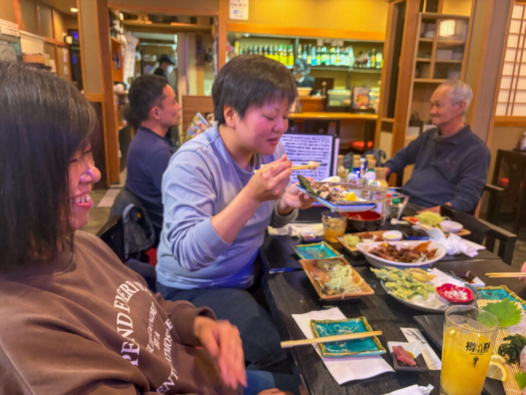ちなみに、えのやん・まこっちゃん・こばやしさんは名物のくさやにチャレンジ