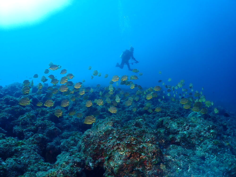 入った瞬間からホウライヒメジが群れでお出迎え!!