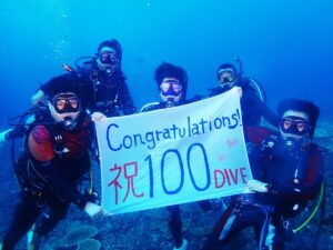 記念ダイブの人は、徳さん考案、水中生卵の刑に処されます(笑)