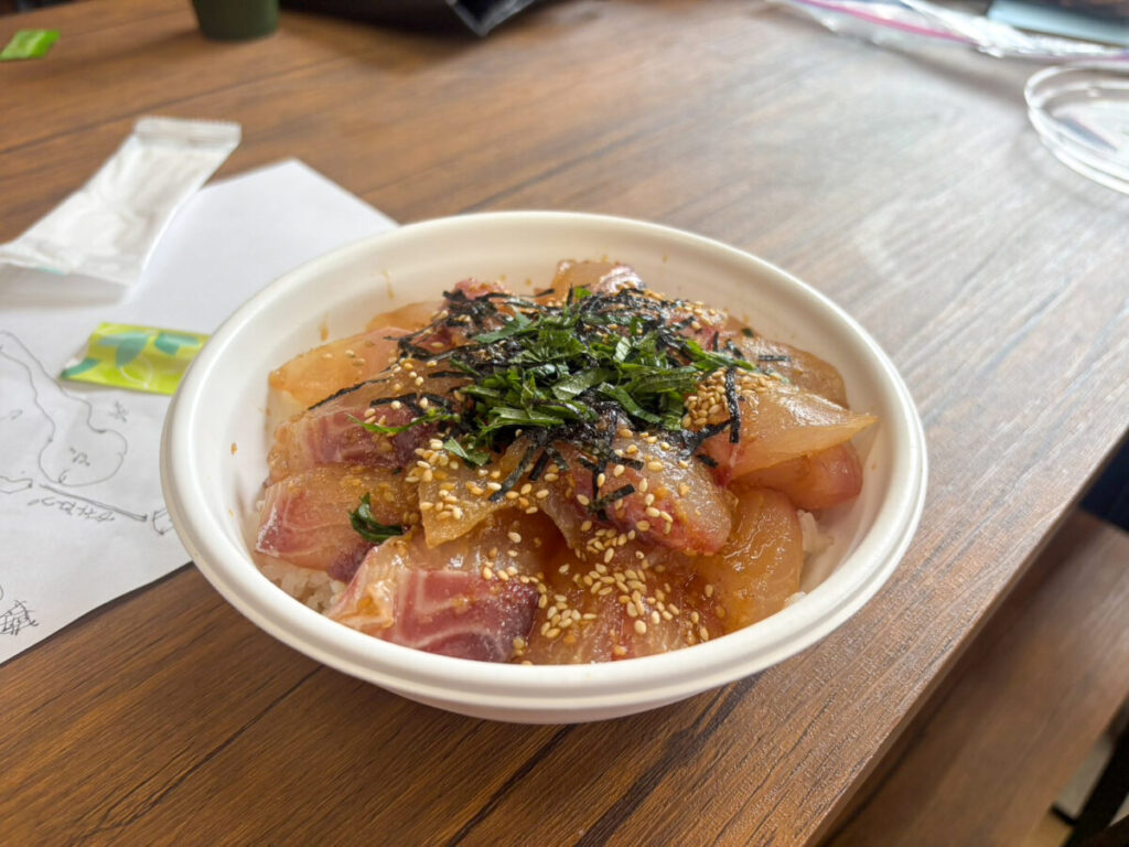 2ボート楽しんだ後のお昼はサービスの近くにできた漬け丼をテイクアウト!!