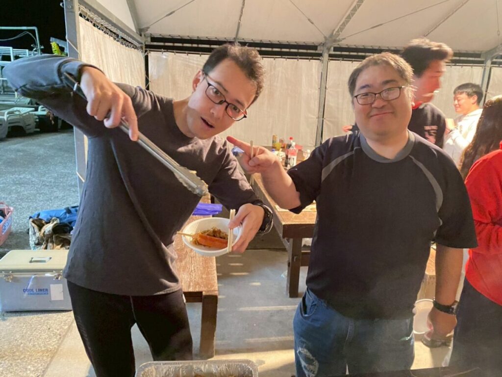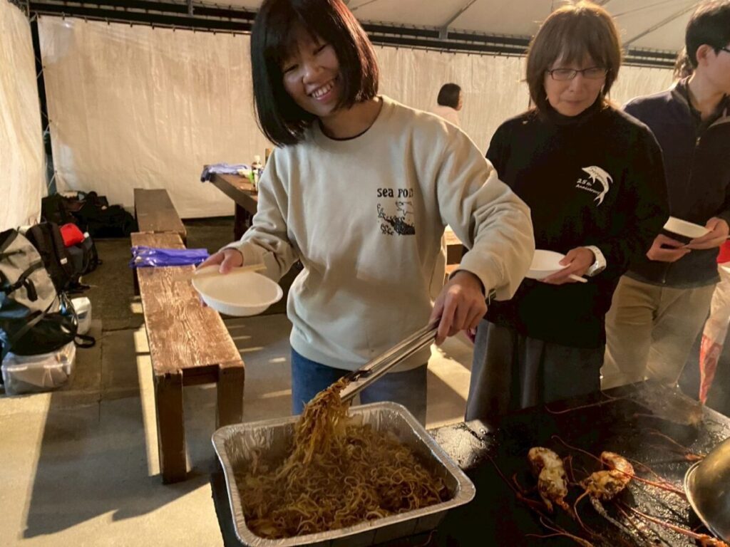 隣ではメンディさんが鉄板焼き、ゆきのさんが天ぷら担当!