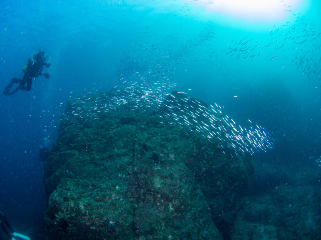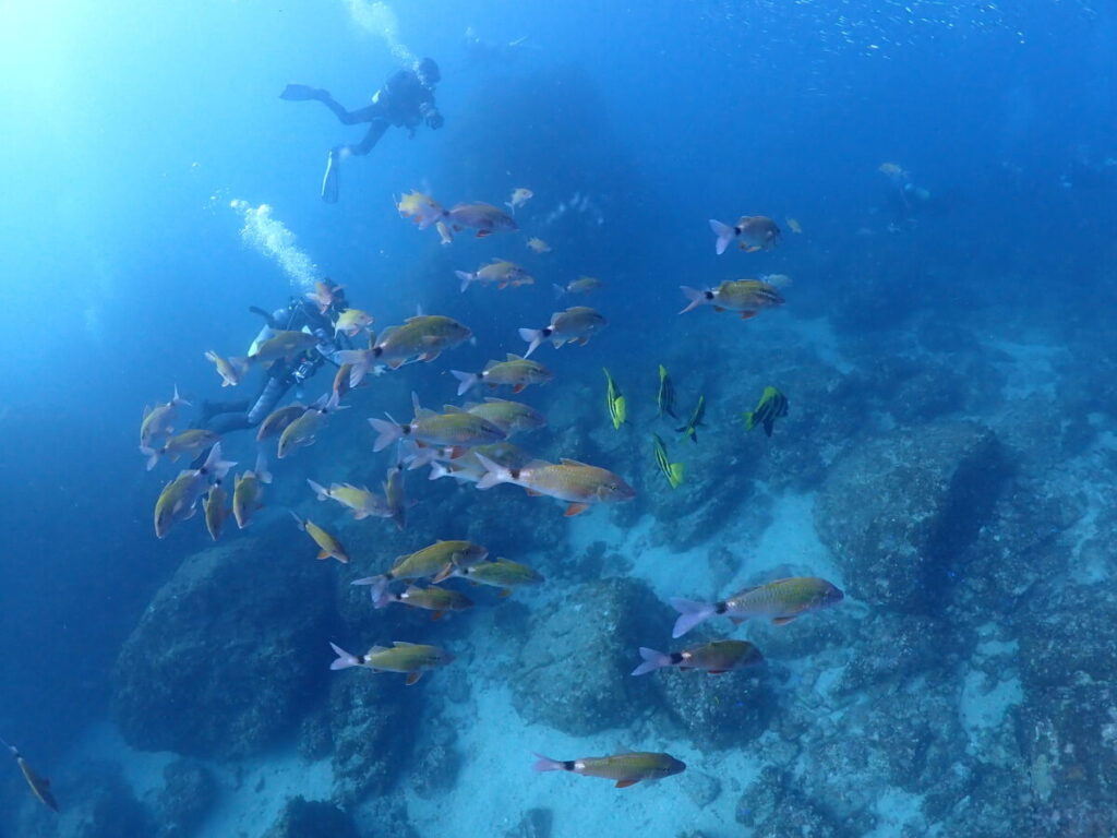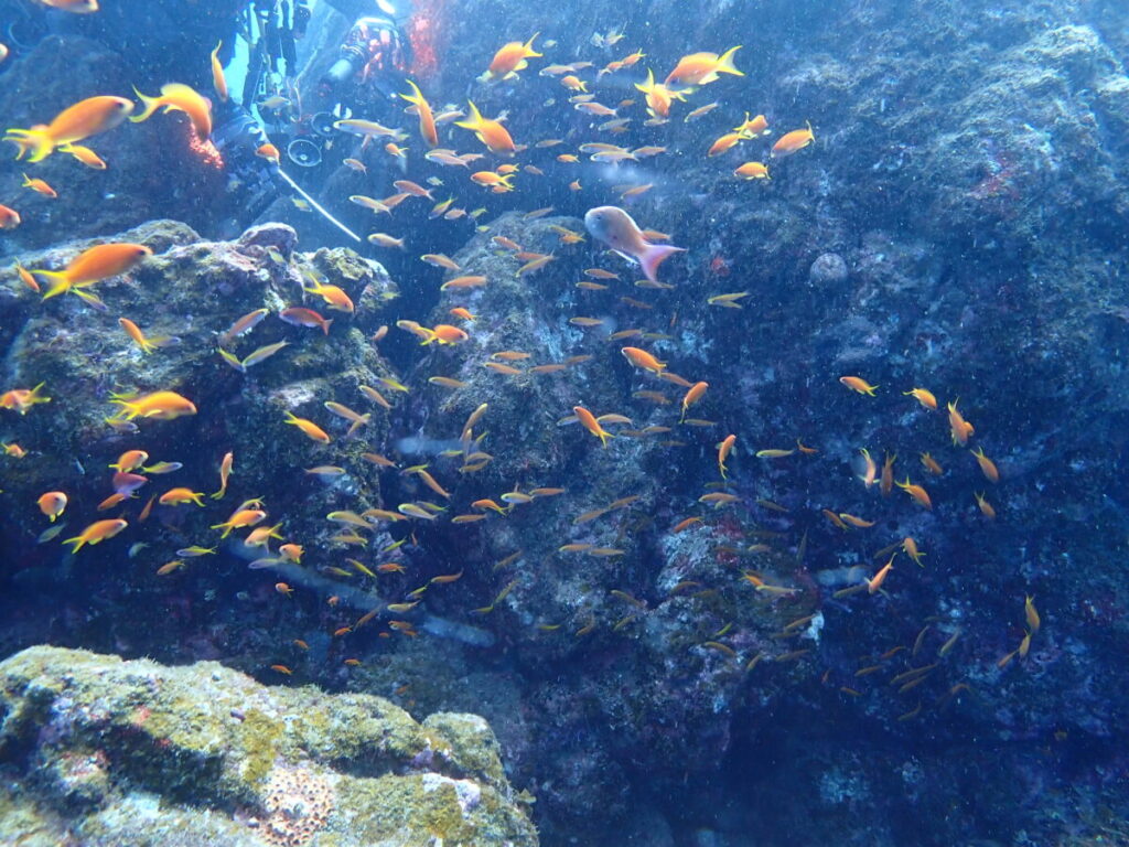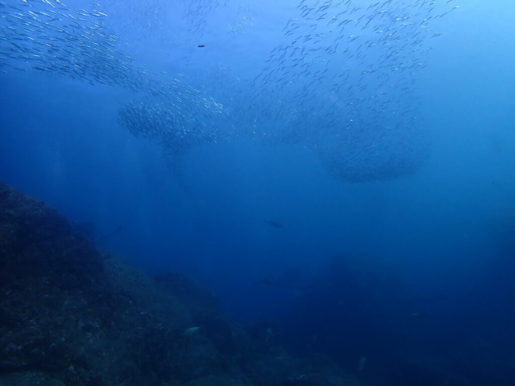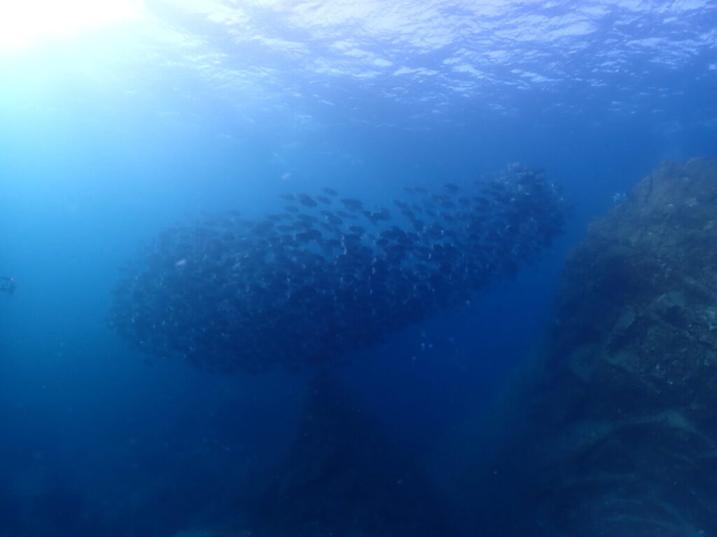 奥の方にはメジナの群れ!ぎゅっと塊になってくれてると大迫力ですね!