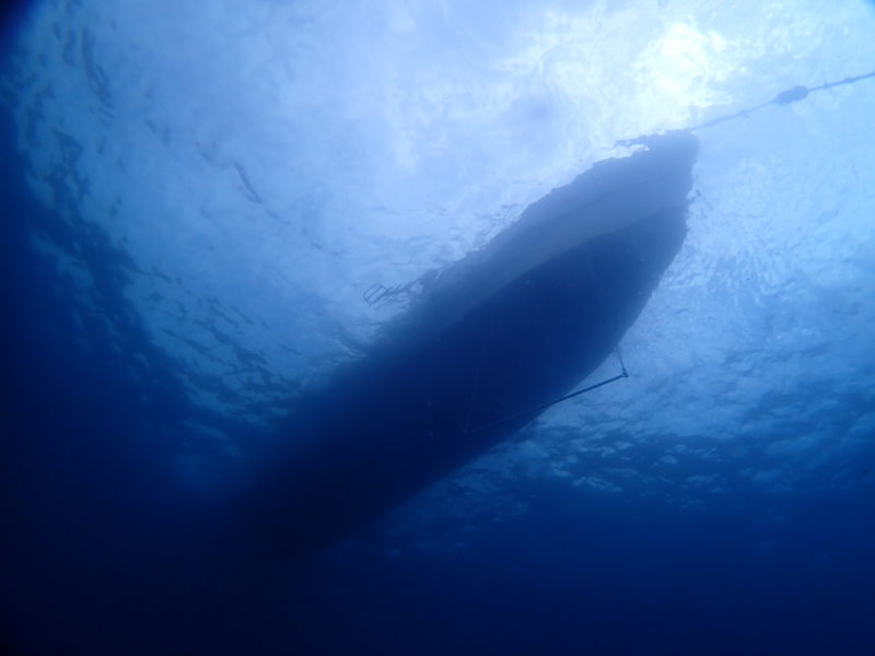 アンカー近くまで帰ってきたところで、龍君があれ!あれ!と指をさしてる
