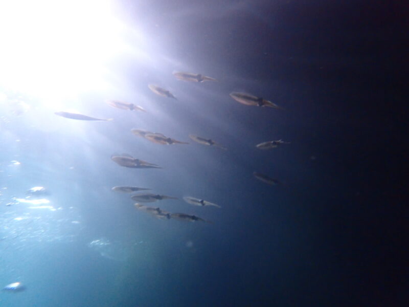 さて、浮上しようか~~~のタイミングで横から回遊魚がビュン!!と通過!!
