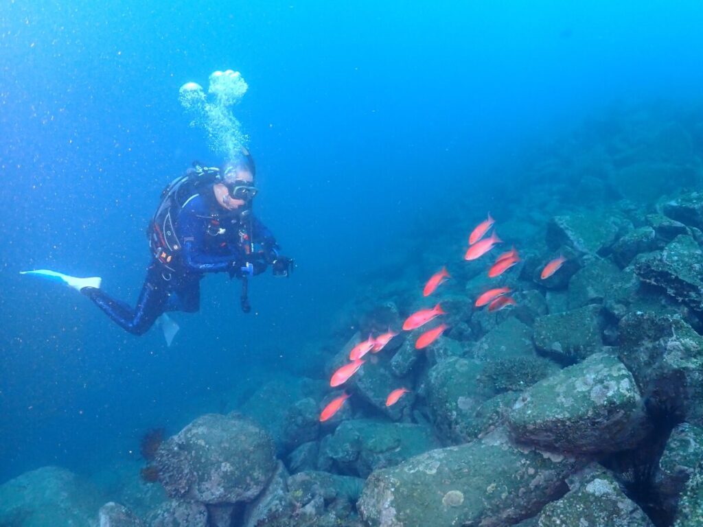 水深20mラインの付近にはミジンベニハゼが大量出現!